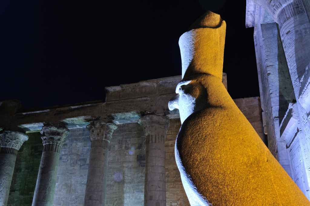 Osiris’ wife, Isis, searches far and wide for his body, and eventually finds him. She is able to return him to a form of life for a short time and she becomes pregnant with a son, Horus.