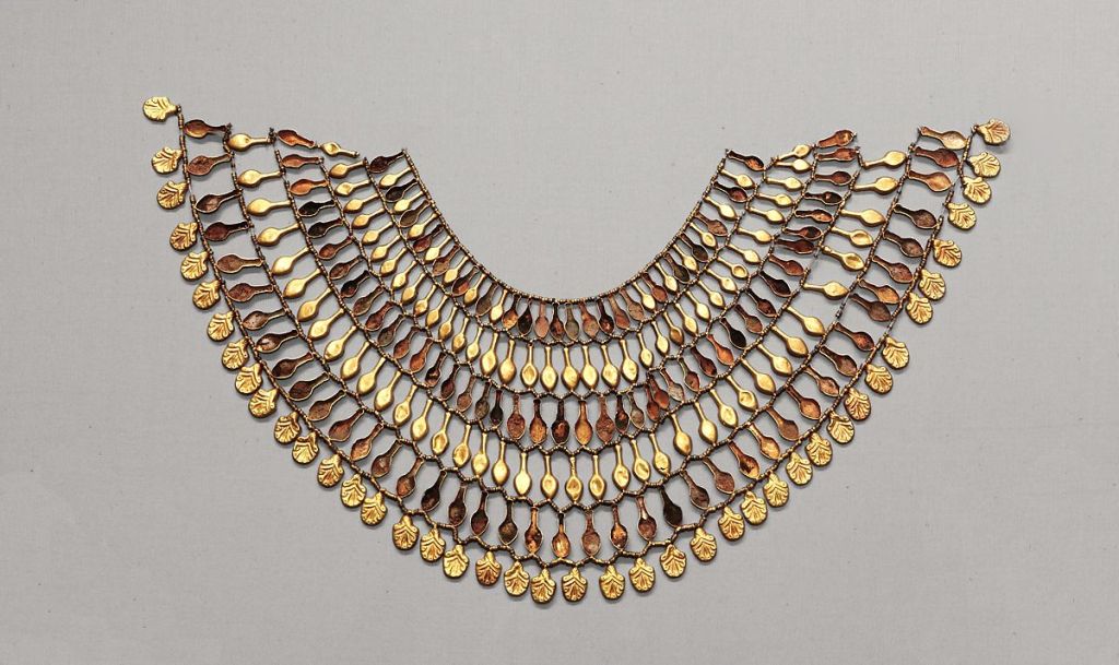 The style you probably think of when you think about an Ancient Egyptian Necklace is actually called a broad collar. They look like this: